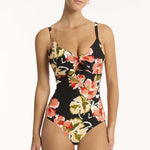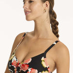 From Sea Level, the Juniper Tie Front DD/E Cup One Piece swimsuit is great for the bigger bust with hidden underwire support and side boning and adjustable and convertible straps.  Also available in a singlet or Bikini.