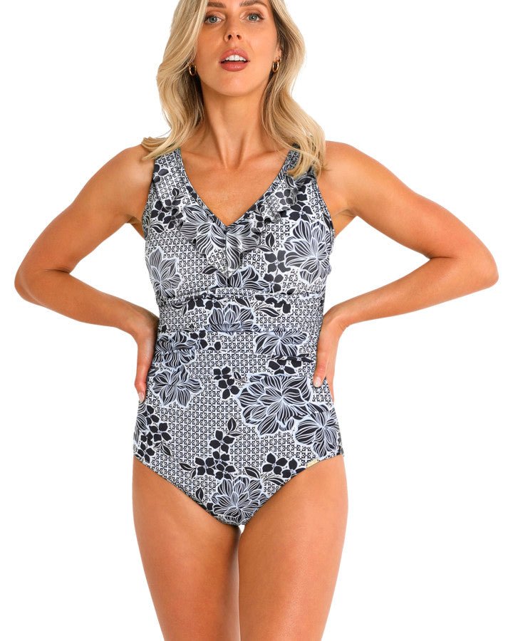 The Jantzen Tunsley DD/E Cup Mesh Frill One Piece swimsuit is one of the top 5 Jantzen styles and a favourite of our customers. With flattering tummy ruching and powernet support, this is a stylish swimsuit for any occasion.