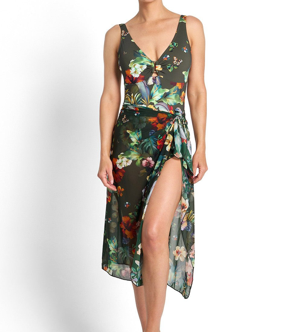 Swimwear fashion includes resort wear, beach cover-ups, sarongs, kaftans, flowy shirts and pants designed to be worn over your swimsuit for effortless transitions from beach to street.