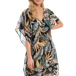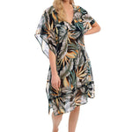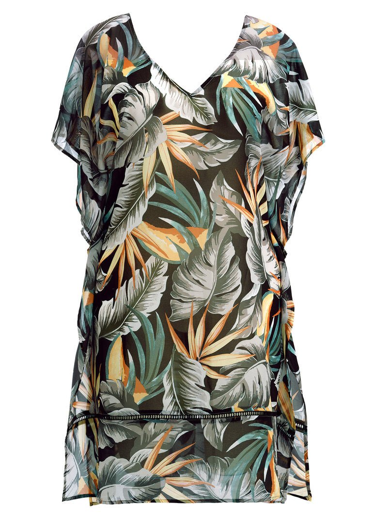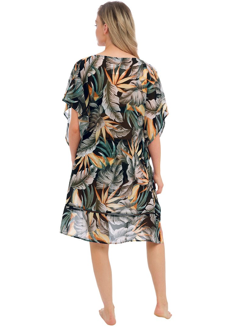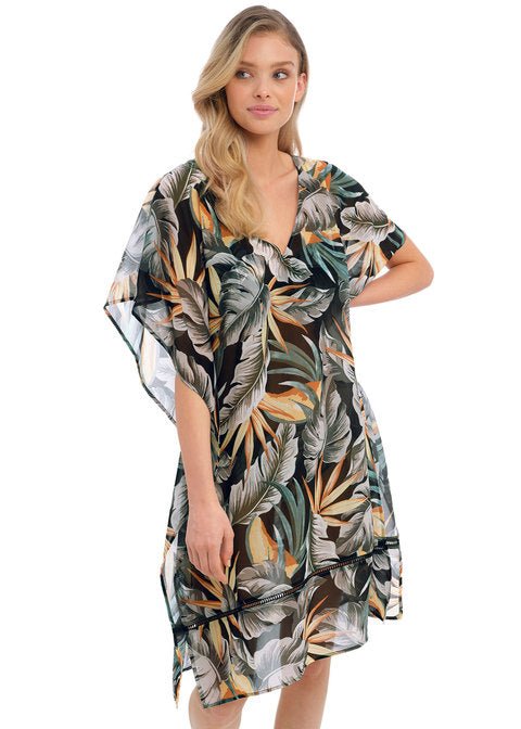 V-neck kaftan with beautiful black ladder stitch detail Mid-length