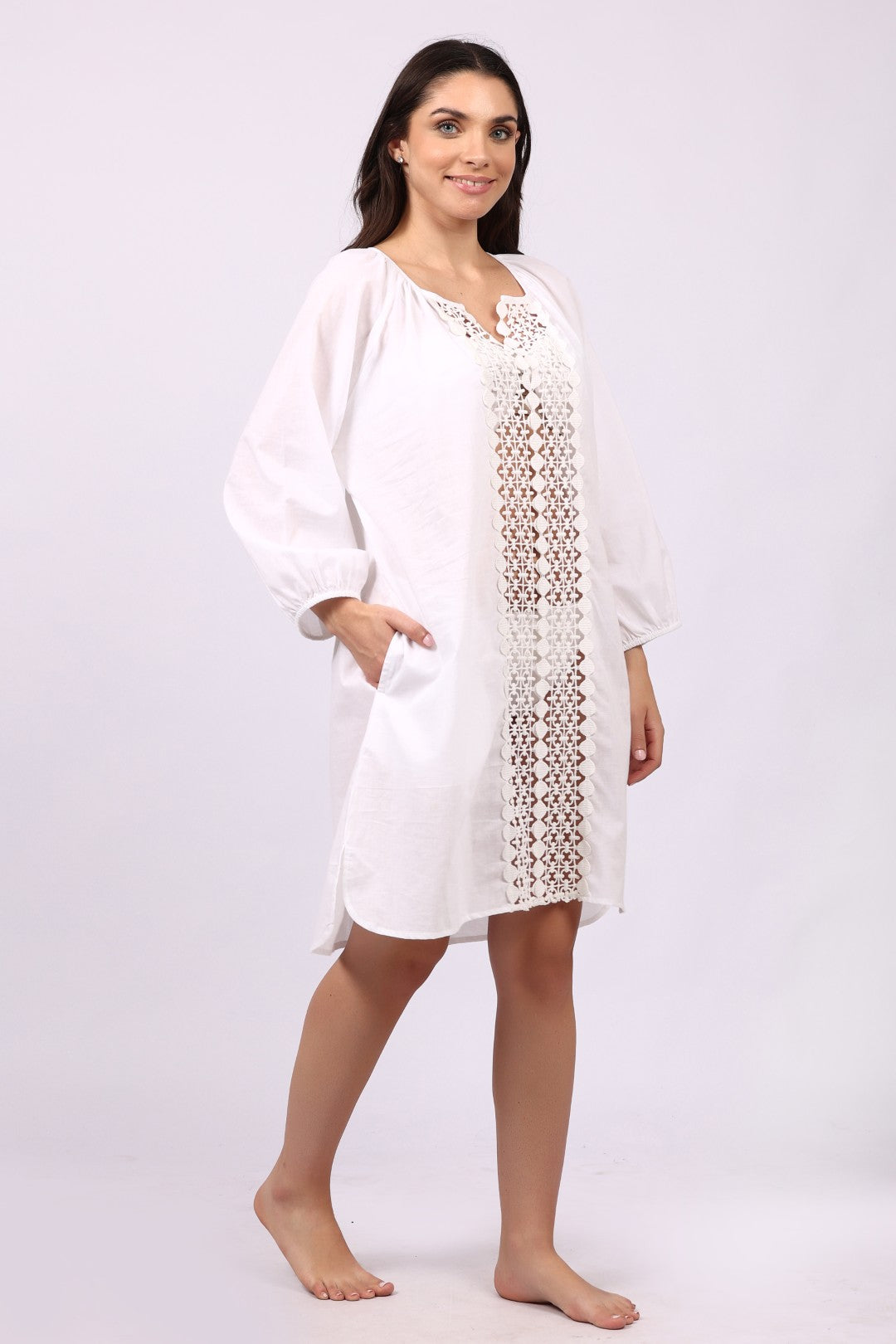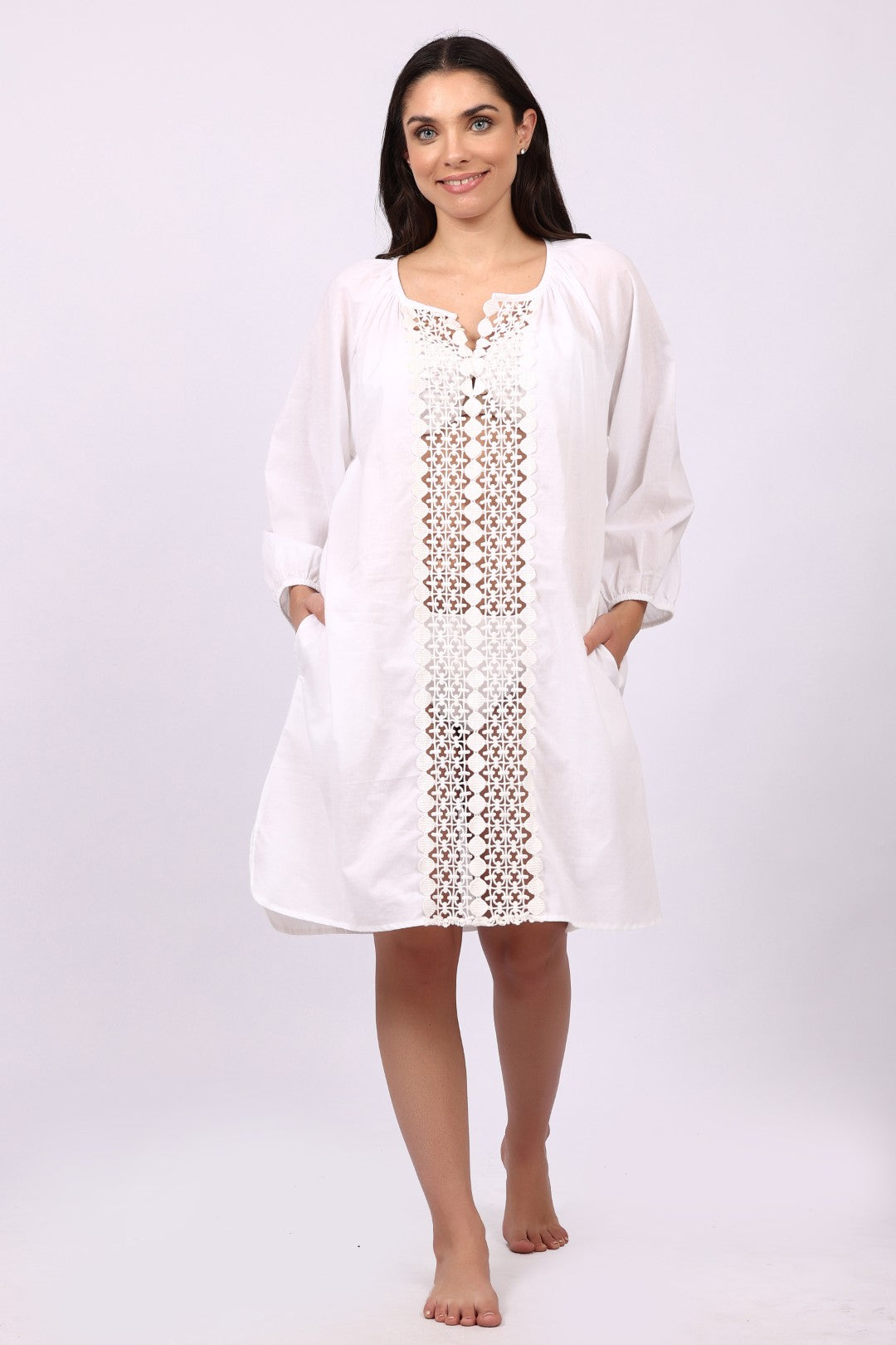 The Lotus Kokomo Crochet Swim Dress in White is the perfect blend of breezy elegance and effortless holiday style. Crafted from beautifully soft, lightweight Indian cotton, this relaxed swim dress is designed to slip easily over your swimsuit — ideal for poolside lounging, beach days and warm-weather getaways.