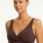 Sea Level Essentials Edit Cross Front Multifit One Piece Swimsuit in new season's colour Cocoa, a stunning classic style in fashionable chocolate brown.