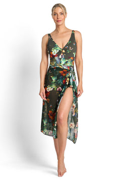 Hibiscus Mesh Beach Smock Cover Up Forest