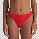 Front view of the Marie Jo Avero Thong Brief in Scarlet showing comfortable G-string style and signature check pattern.