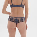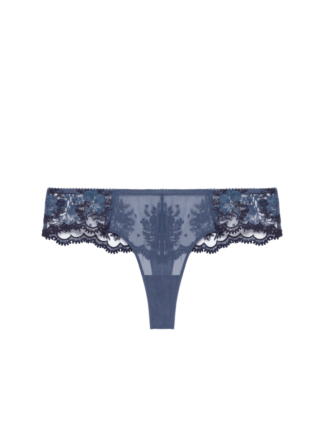 This fabulous Tanga Brief features the fine, two-tone embroidery and scalloped edges across the hips and rear for a sheer, sexy look and a soft, silky tulle/microfiber in the front for perfect comfort and fit. Pairs perfectly with the stunning Half Cup Bra.