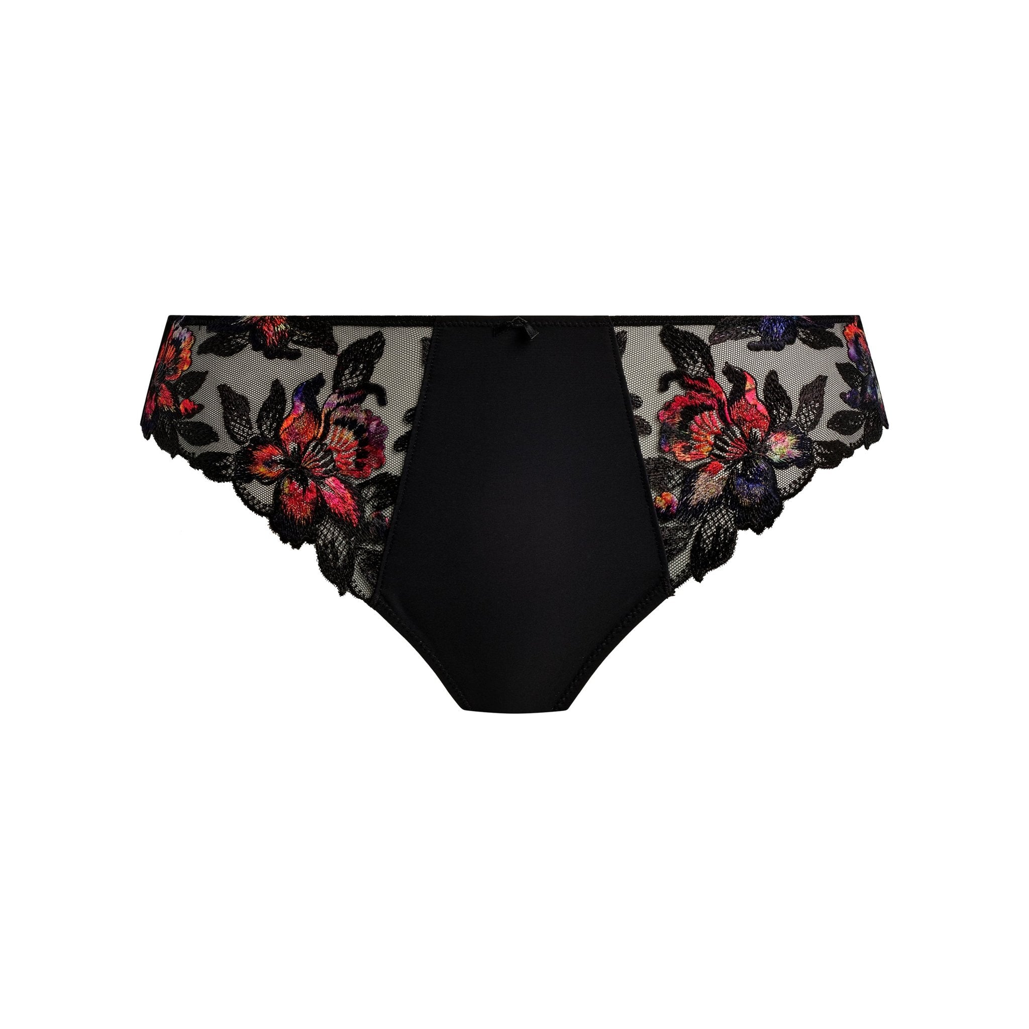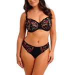 A standout collection by Fantasie, Magdalena, where luxury meets comfort. With intricate, heavily stitched, overprinted embroidery in vibrant sunset hues against a black base, this beautiful thong, gstring brief pairs with the full cup underwire bra or half cup balcony bra  (as shown in picture) from the same collection.