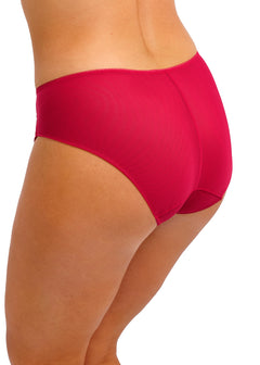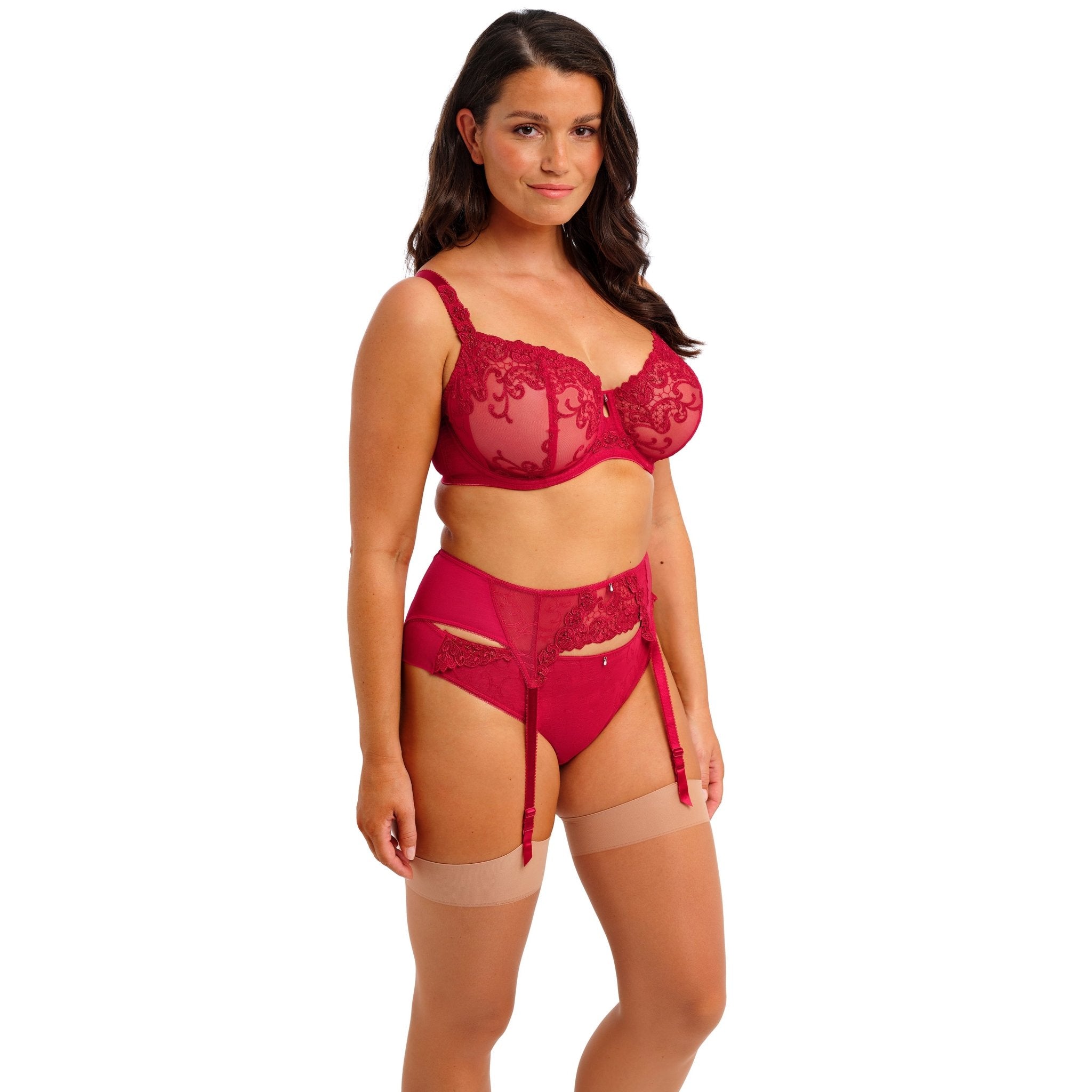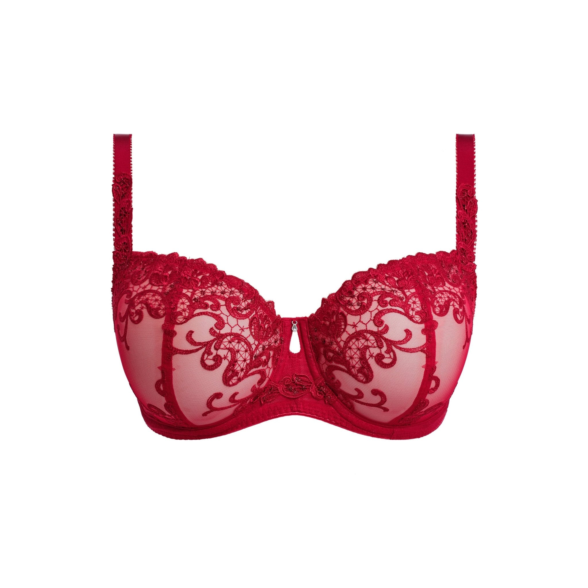 Elevate your lingerie wardrobe with the Fantasie Portia Underwire Balconette Bra in striking Red - featuring elegant scroll embroidery with shimmering lurex dots.