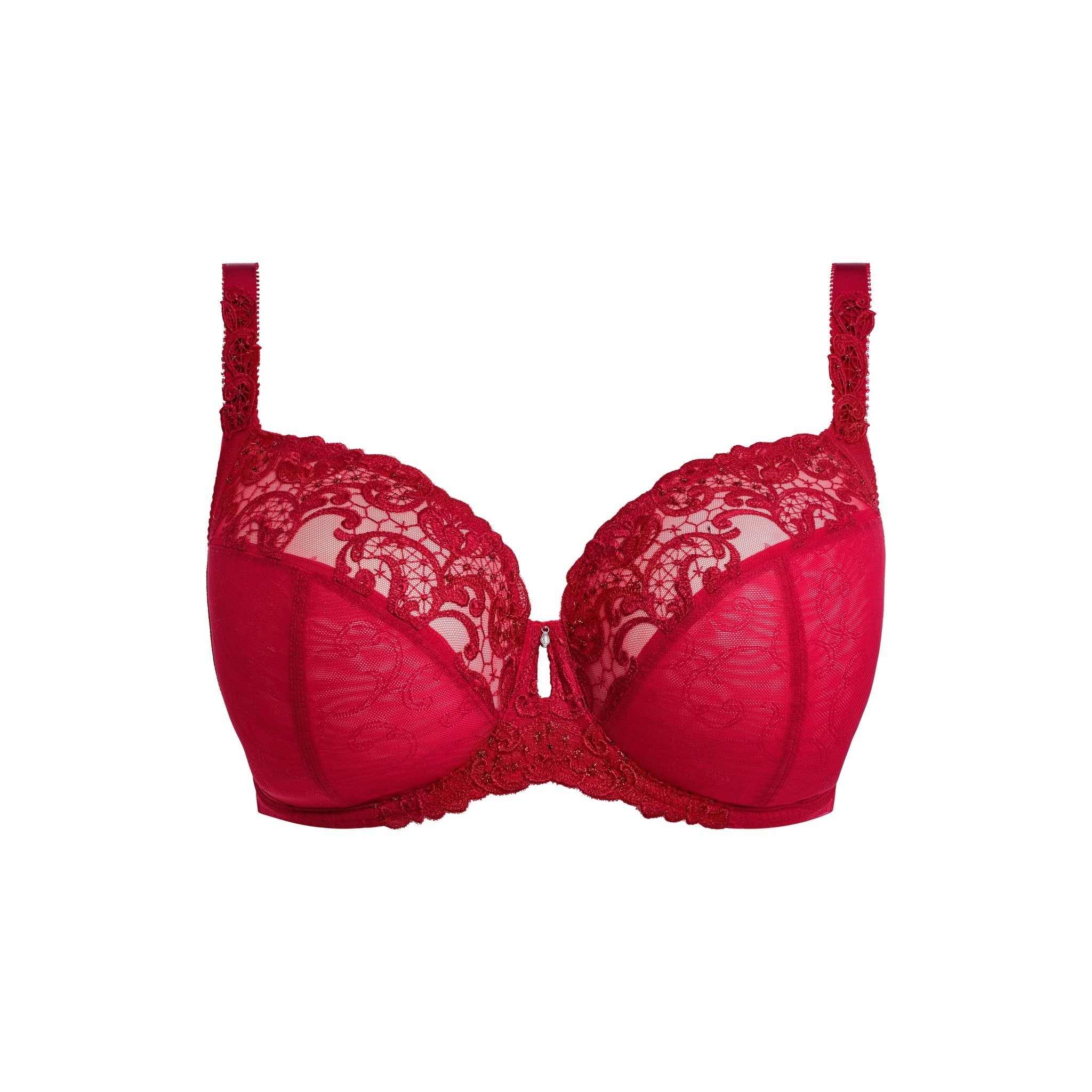 Elevate your lingerie collection with the Fantasie Portia Underwire Full Cup Bra in striking Red - featuring elegant scroll embroidery with shimmering lurex dots.