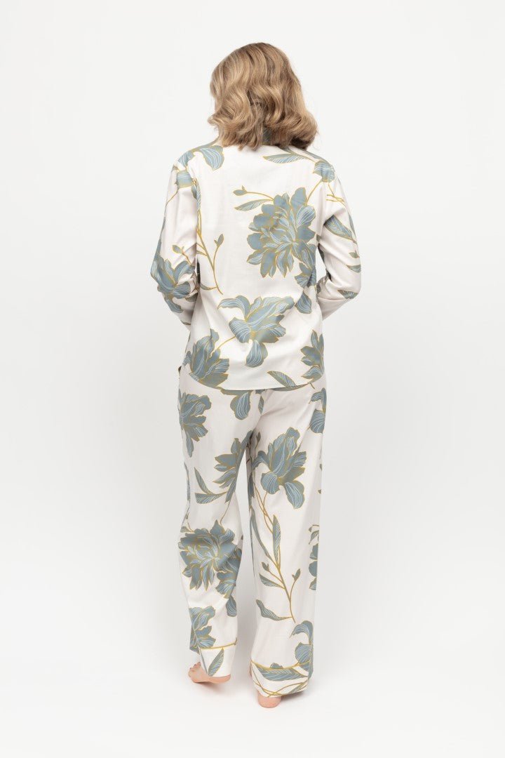 Indulge in a night of serene sophistication with Cyberjammies Piper White Mix Floral Print Long Sleeve Wide Leg Pyjama Set. Embrace the beauty of botanical elegance with this exquisite pyjama set, crafted from a heavenly blend of 60% cotton and 40% modal for unmatched comfort.