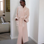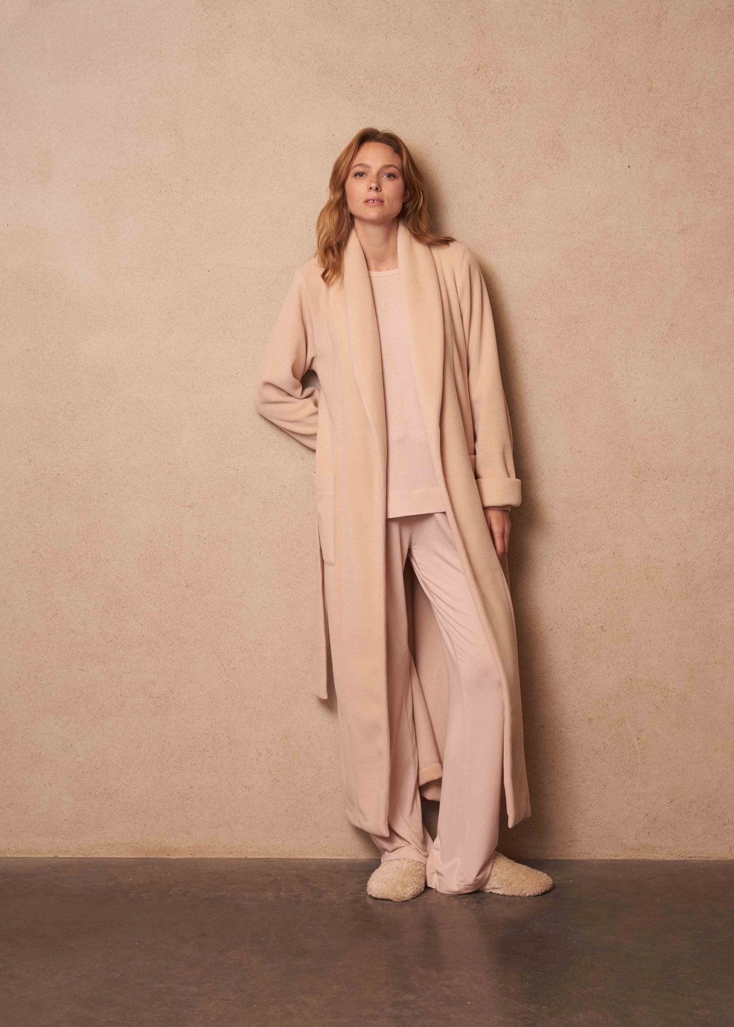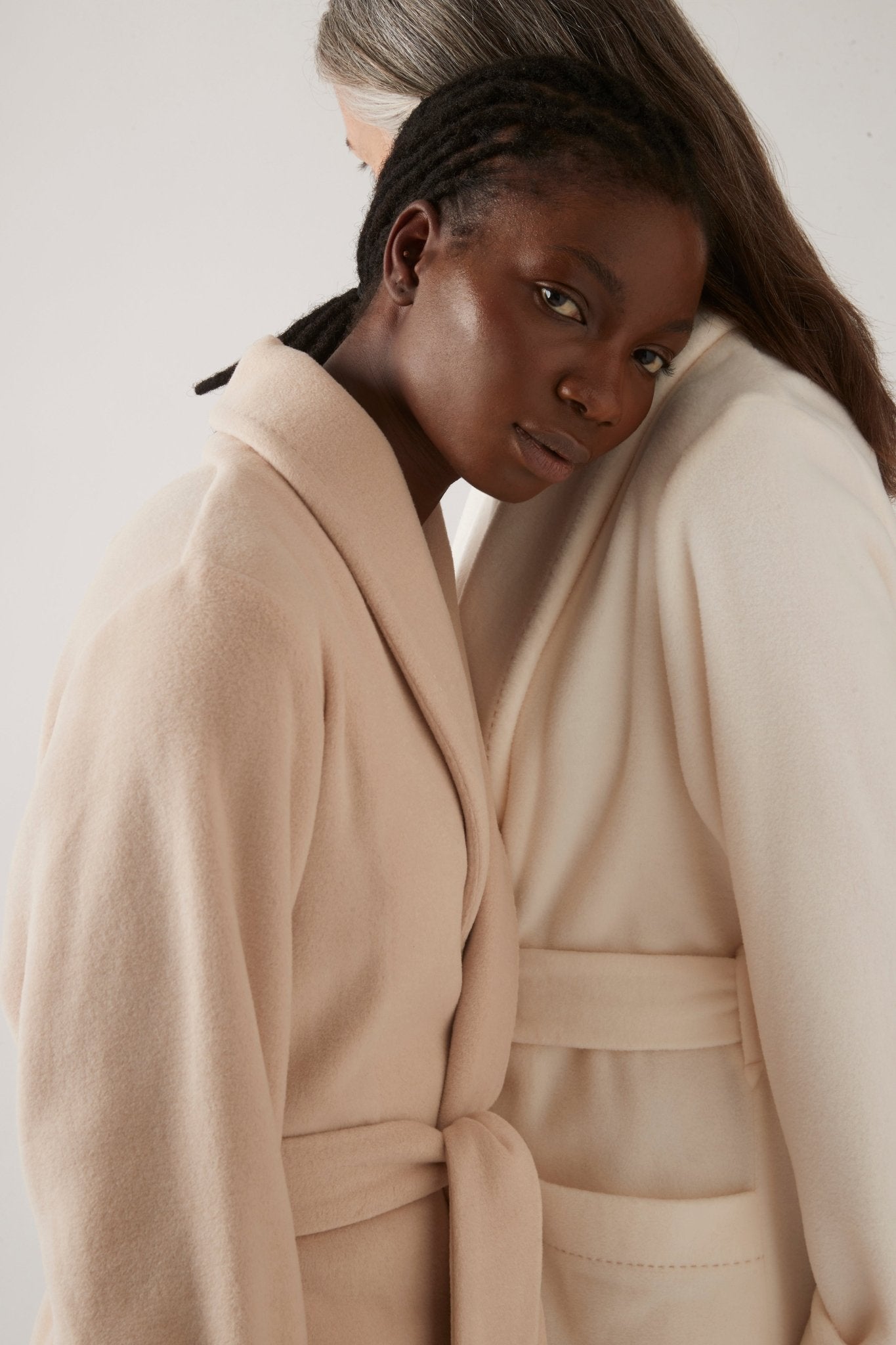 This ultra soft, Italian fleece robe is as cosy as it is stylish. Turn back cuffs and a subtle running stich contrast detail on the lapel and sleeves make this robe a timeless classic.