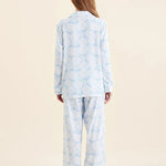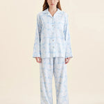 Papinelle Cosy Full Length PJ Set in blue, made from super soft brushed (flannelette texture) 50% cotton and 50% lenzing Ecovero Viscose. A relaxed fit and very cosy and comfortable for sleeping or lounging.