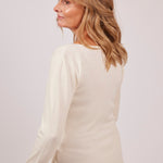 Back and side view of Wool & Cotton Doubleface Long Sleeve Top in ivory, styled for natural movement and warmth.
