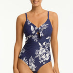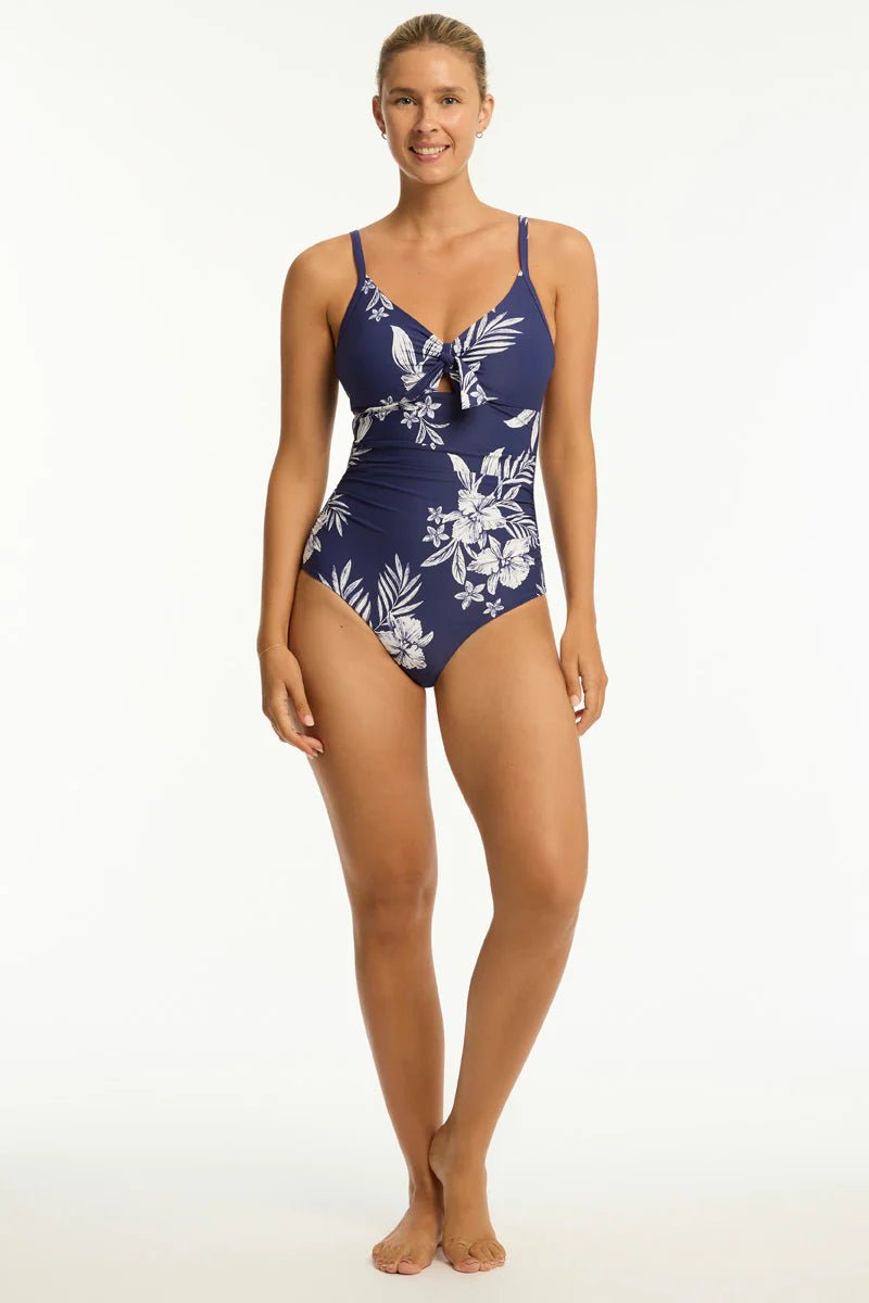 Aloha Tie Front DD/E Cup One Piece Swimsuit Navy