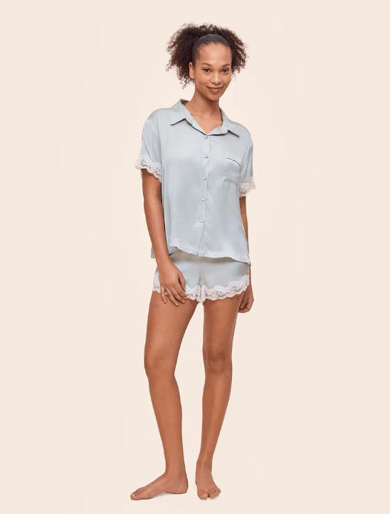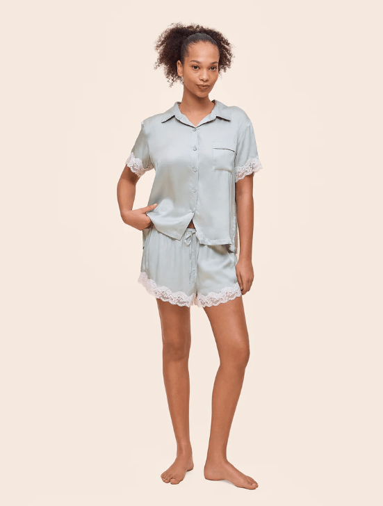 The satin lace trims bring femininity and elegance without sacrificing comfort, making it a standout choice for sleep + lounge style.