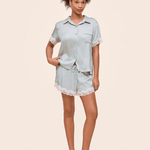 The Papinelle Annabelle Satin Lace Boxer PJ Set delivers luxury loungewear and breathable nightwear in perfect harmony. Crafted from a soft satin blend of 50% Rayon and 50% Viscose, this pajama set offers a subtle sheen and feather-light feel that keeps you comfortable on warm evenings.