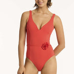 From Sea Level, the Casa Del Mar Plunge One Piece swimsuit is a high glamour costume taking inspiration and elegance from the 1950's with retro shaping, sleek contouring and floral rosette feature on a removable belt. Sea Level introduce this new plunge style swim costume with powermesh support, front and back, and beautiful contouring to flatter your figure. You'll feel so stylish at the resort or on the cruise deck in this beautiful one piece.