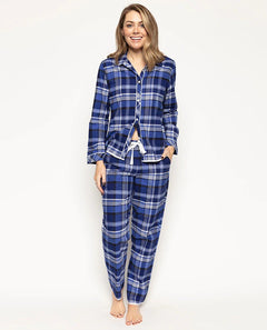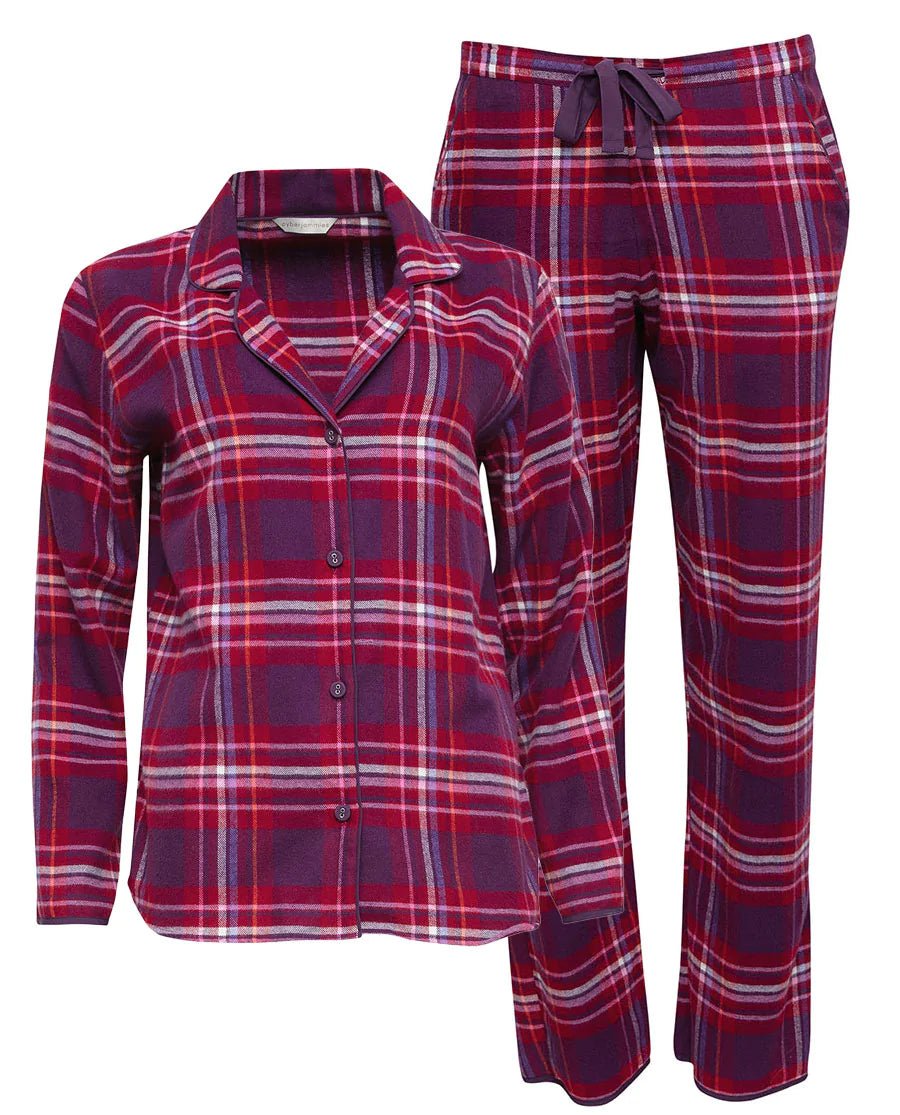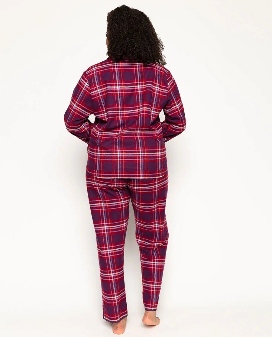 Bold and bright red, pink and purple check PJ set is made from super-soft, brushed 100% cotton. Trimmed with purple modal and with modal covered buttons, this PJ set will warm your heart on long, cold winter's nights. Match with Clarissa Long Wrap Robe for extra warmth this winter.
