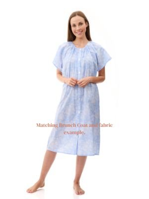 With a small tie neck detail and flattering soft gathers over the bust - this light and roomy sleeveless nightie looks fantastic paired with the matching light cotton Brunchcoat.