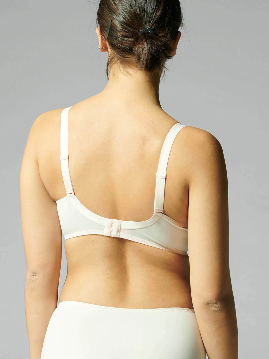 • Full coverage plunge silhouette supports and shapes the bust up to G cup