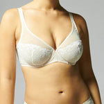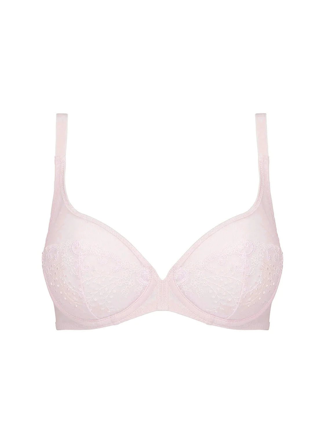 The seductive pairing of embroidery and tulle, Simone Perele's Delice Full Cup Plunge bra is as comfortable as it is pretty. A scarf shape deep plunge neckline in an embroidered full cup provides support and control, with a subtle hint of cleavage. Available up to a G cup, all sizes feature a rigid tulle lined lower cup and strap base for shape. While D cup upwards features responsive knit and flat binding to further support and cover the bust. Please note blush colour best represented in ghost image. Or refer strapless bra in same collection for better colour indication.