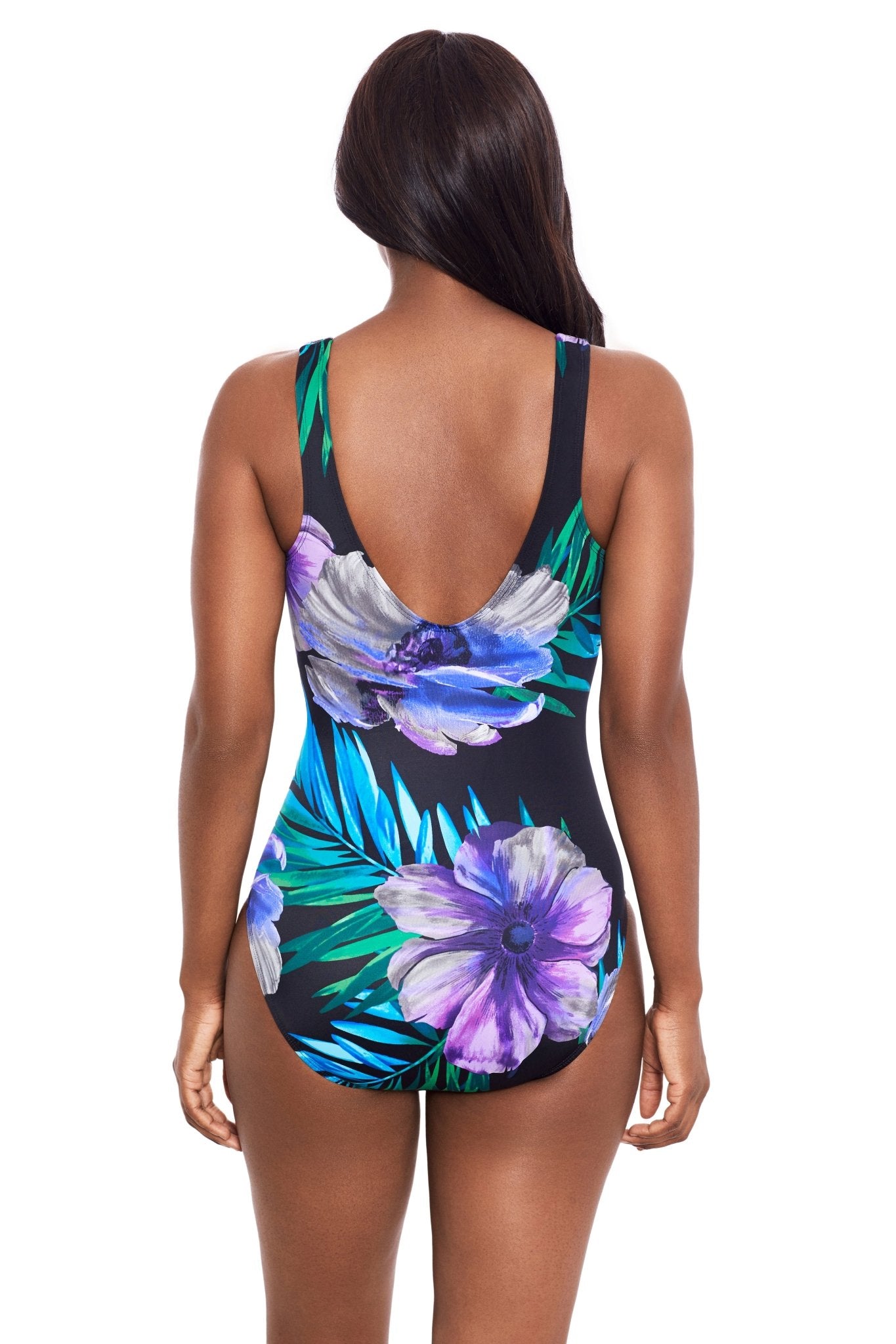 Flora Aura Its A Wrap One Piece Swimsuit Black Multi