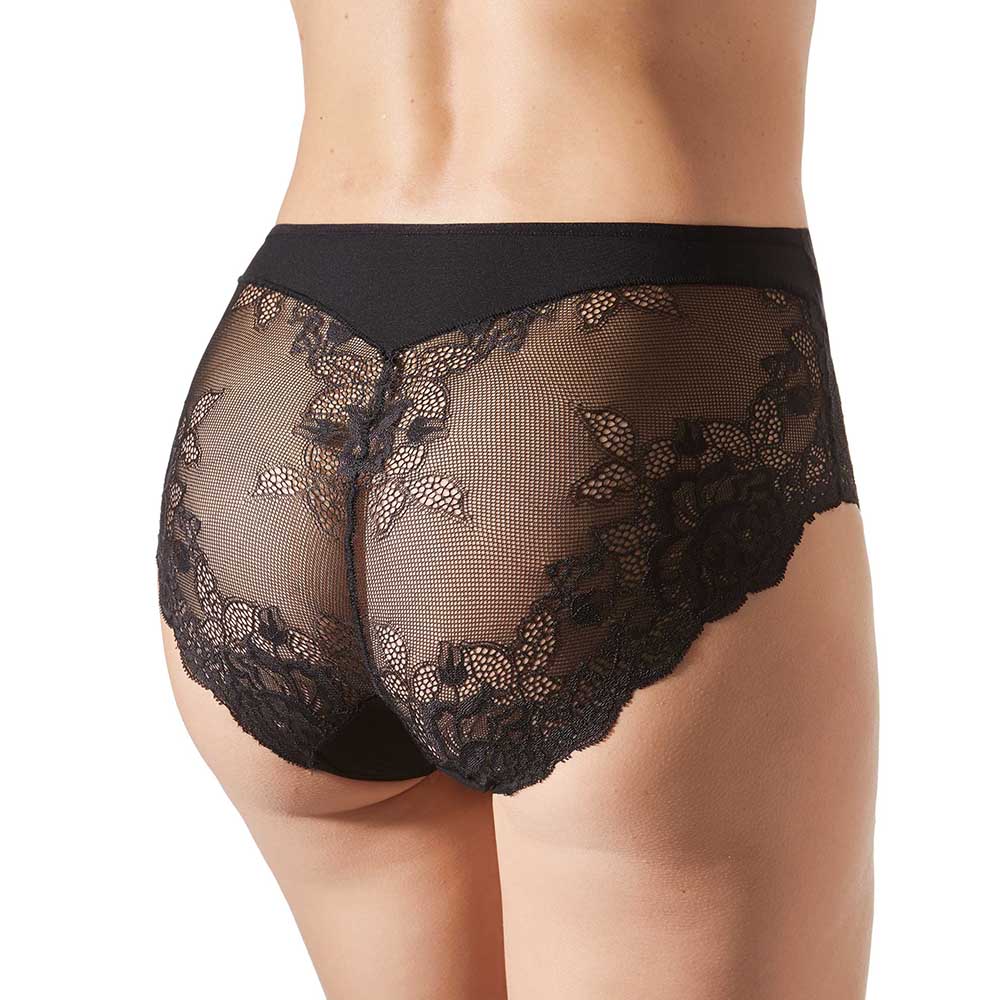 The Janira Greta Full Brief Maika in Black offers elegant coverage with a touch of refined lace detailing. Made from soft, breathable microfibre, these high-waisted full briefs provide a flattering, smoothing effect and all-day comfort. The lace inserts at the hips and waistband bring a feminine finish while remaining invisible under clothing.