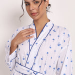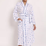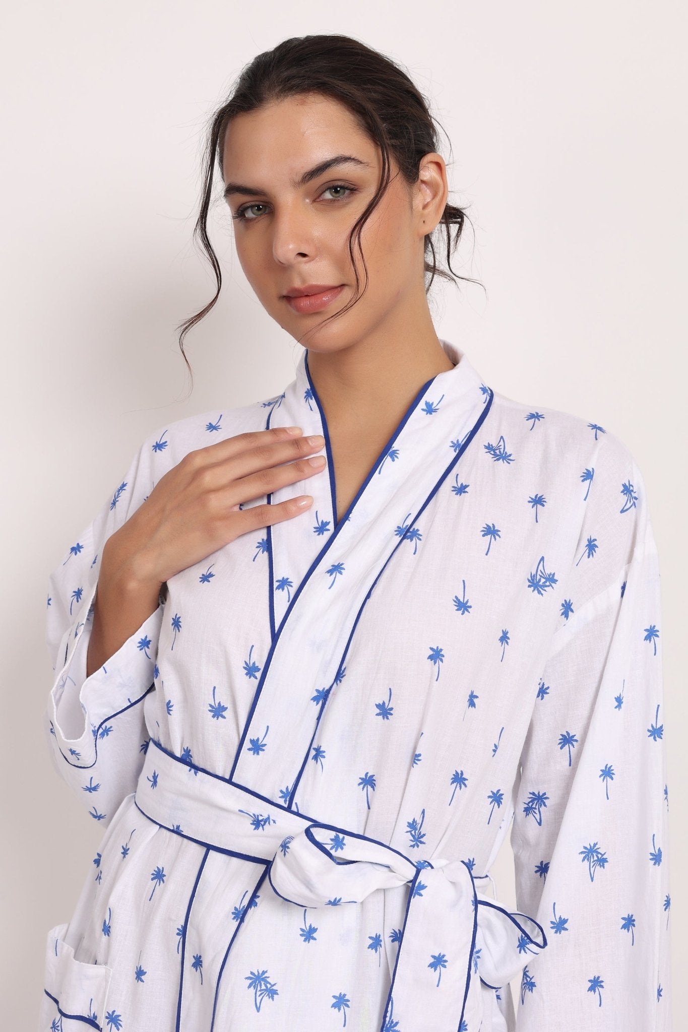 The Hamptons 100% Cotton Bathrobe by Lotus is a lightweight, stylish summer robe that is as fun as it is practical. Made from the finest Indian cotton voile in a cute navy micro palm print - this lovely summer dressing gown makes for a great gift - just for you or that someone special!