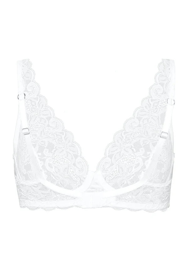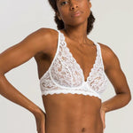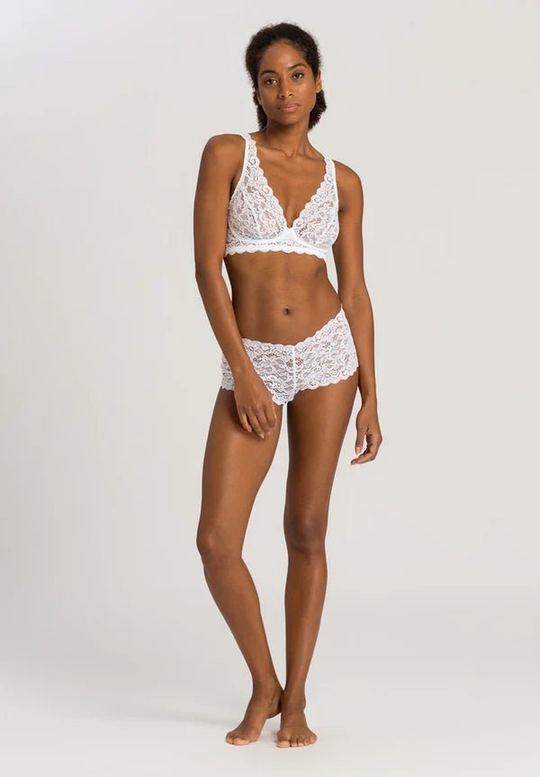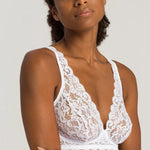 Adding a touch of elegance to the everyday, the HANRO Luxury Moments All Lace Soft Cup Bra features flattering support and shape without requiring a wire. A deep V-neckline and see-through, seamed cups provide support and shape to this underwear essential, while scalloped lace detailing adds a touch of feminine sophistication. With hook and eye closure at the back, this bra has adjustable elastic straps with metal hardware to deliver a custom fit and feel.