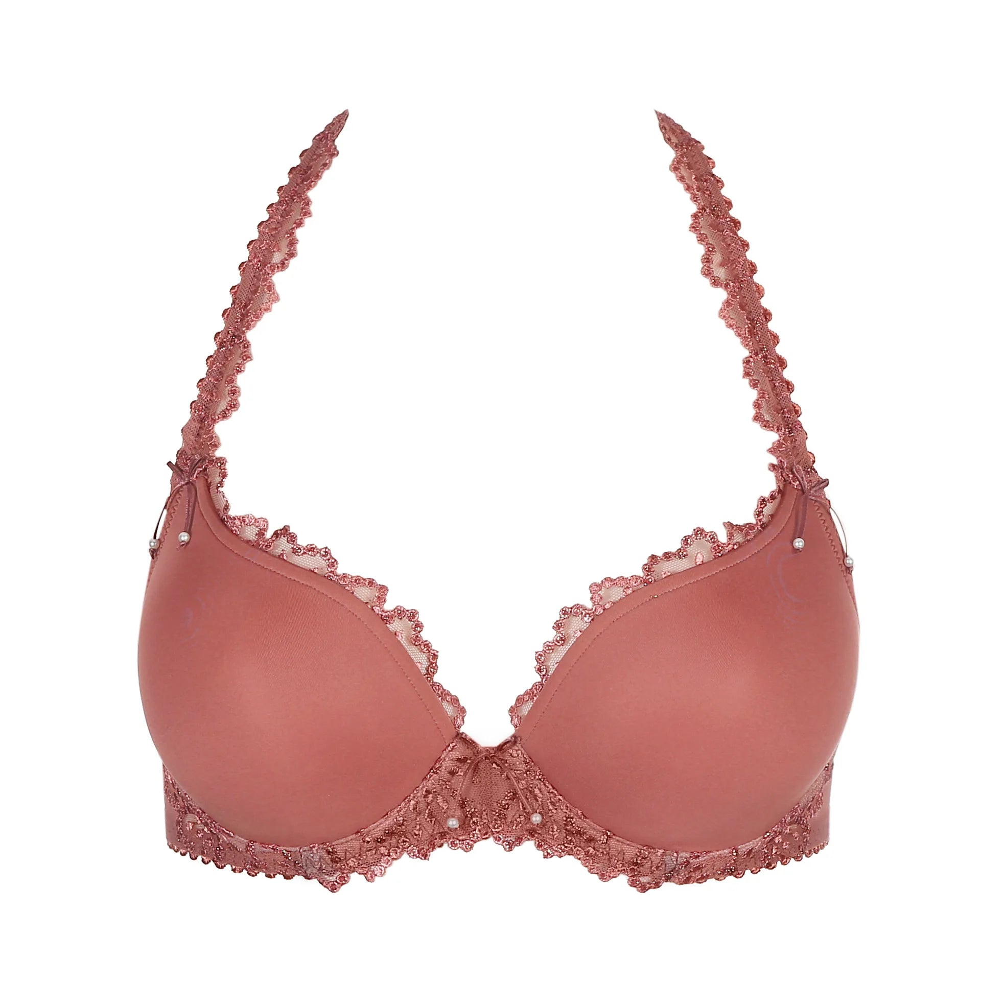 Marie Jo Jane Padded Heart Shape Bra in Red Copper from The Foundation, featuring embroidered cups, plunge fit, and adjustable straps.