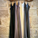 The Kelly Long Chemise is one of the most luxurious nighties you'll ever own. It is cut on the bias for a flattering fit with adjustable spaghetti straps and finished around the neckline with a 2cm bias binding and falls to mid calf. Available in a range of colours.