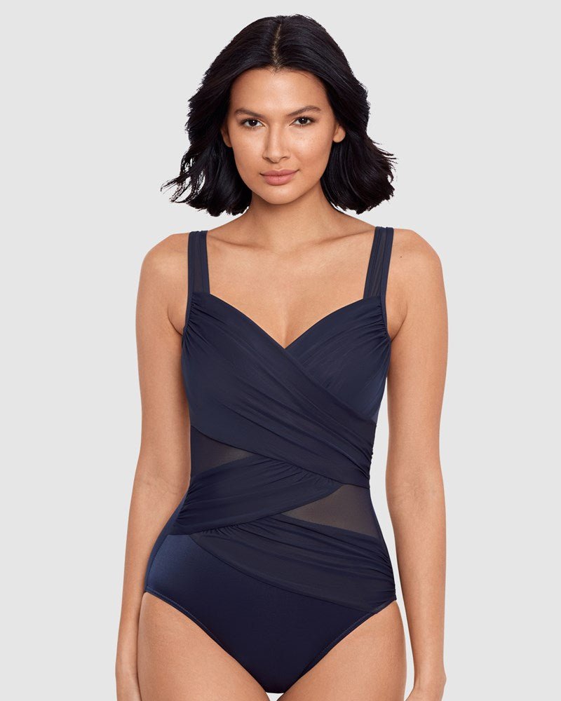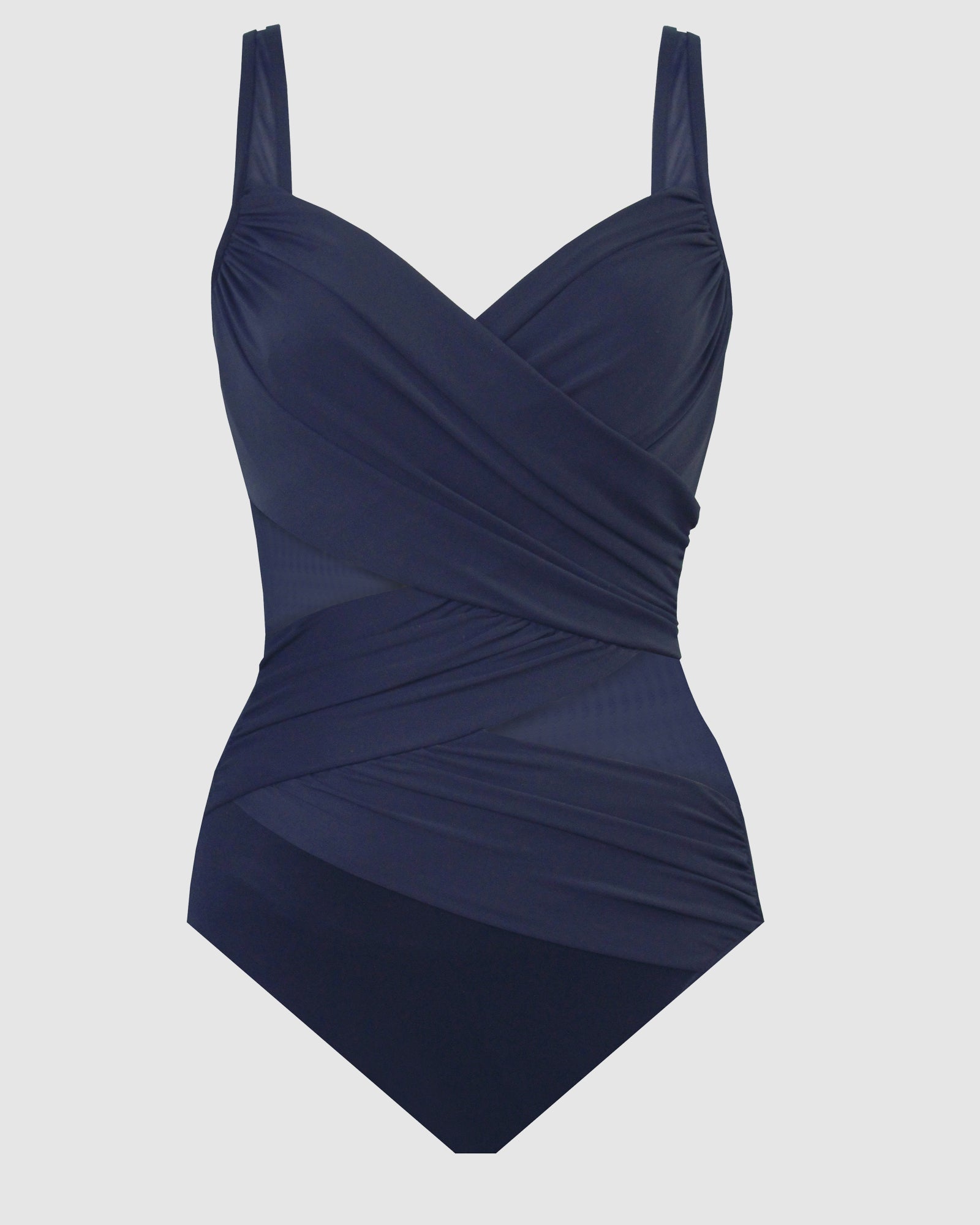 Miraclesuit's Network Madero Shaping Underwire swimsuit will sculpt a beautiful silhouette, thanks to powerful shaping fabric that's complemented by curve-enhancing draping. Made from a single layer of Miratex fabric, it's a control swimsuit which smooths and slims all over, while the ruched crossover design and triangle mesh inserts create the illusion of a smaller waistline. With hidden underwire to support and lift your bust.