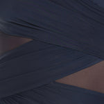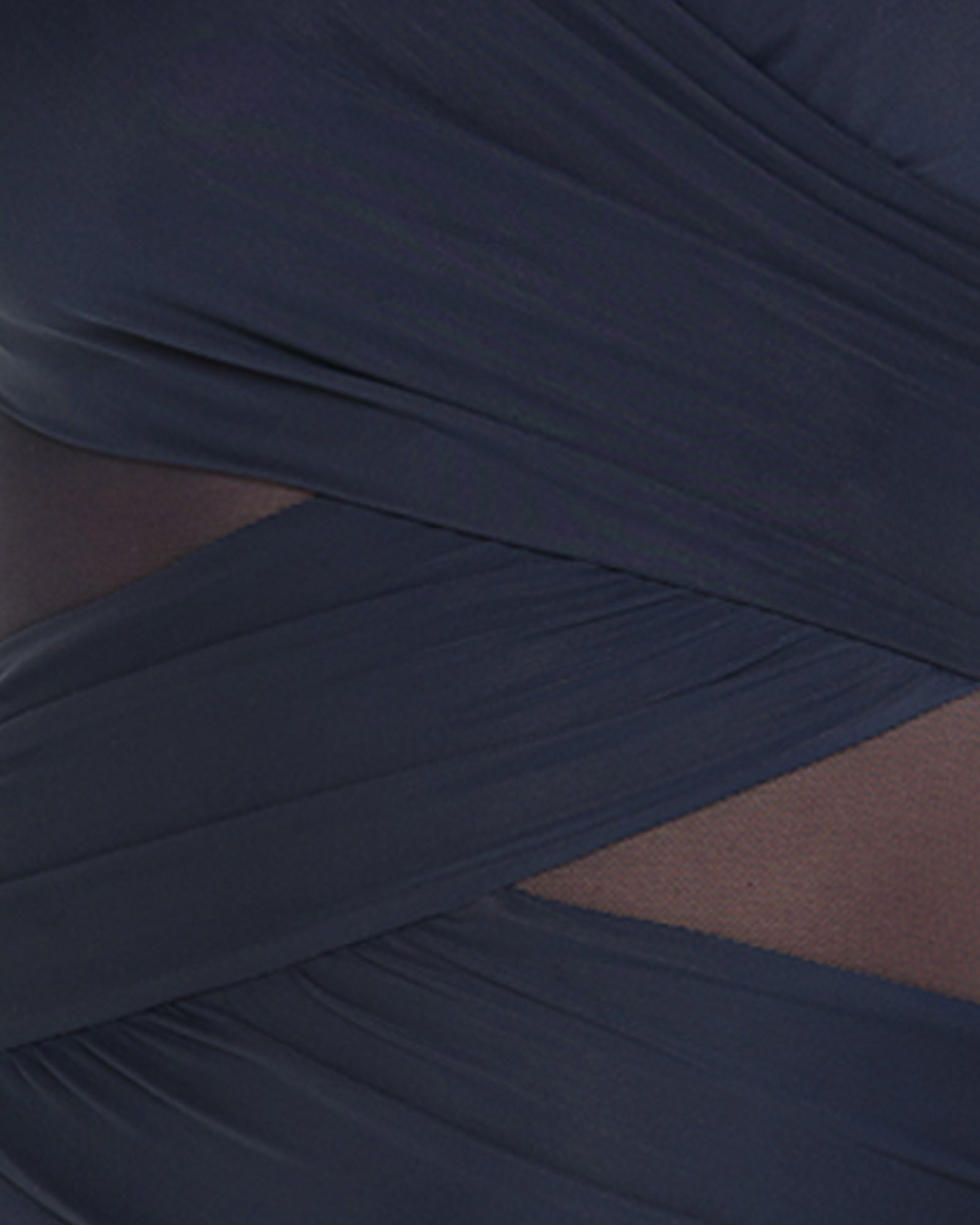 Fabric composition: Body - 69% Nylon, 31% Spandex. Drape - 82% Nylon, 18% Lycra® Spandex.