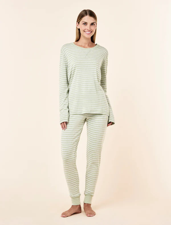 Pia Top & Jogger Set Fern Green/Ecru Stripe