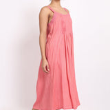 Side view of coral summer sleepdress with flowing hem and lightweight texture.