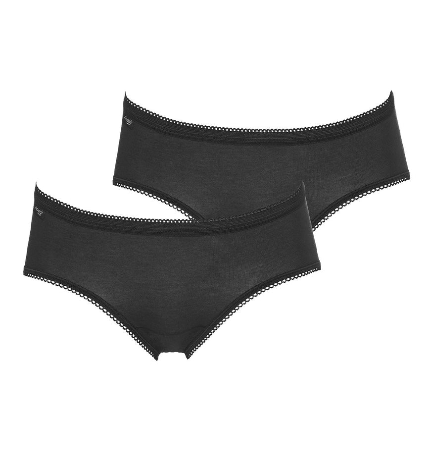 Sloggi Midi Hipster Briefs by Triumph Lingerie, a classic cotton underpant that gives good bottom coverage that is comfortable and breathable and a mid-rise waist. Smooth and lightweight with a fine scalloped trim, these Sloggi Midi briefs come in a pack of two. Available in Fresh Powder and Black. Note these briefs are being discontinued and so get in quick before they are gone for good.