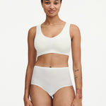 The Ivory 035 colour — a classic off-white for everyday wear — provides subtle sophistication, making this top a versatile foundation whether you’re wearing light-coloured garments, dark outfits, or anything in between. With smooth edges, soft stretch and light structure, it’s perfect for daily wear, travel, or comfort-first lounging.