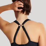 Close-up of Panache Sports Bra in Black moulded cups and wide straps for all-day support.