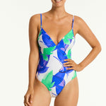 From Sea Level, the Sublime Cross Back Tri One Piece swimsuit with plunge neckline, suits A to DD cup busts and has a low back with cross strap detail. Shoulder straps are adjustable for length and fit.